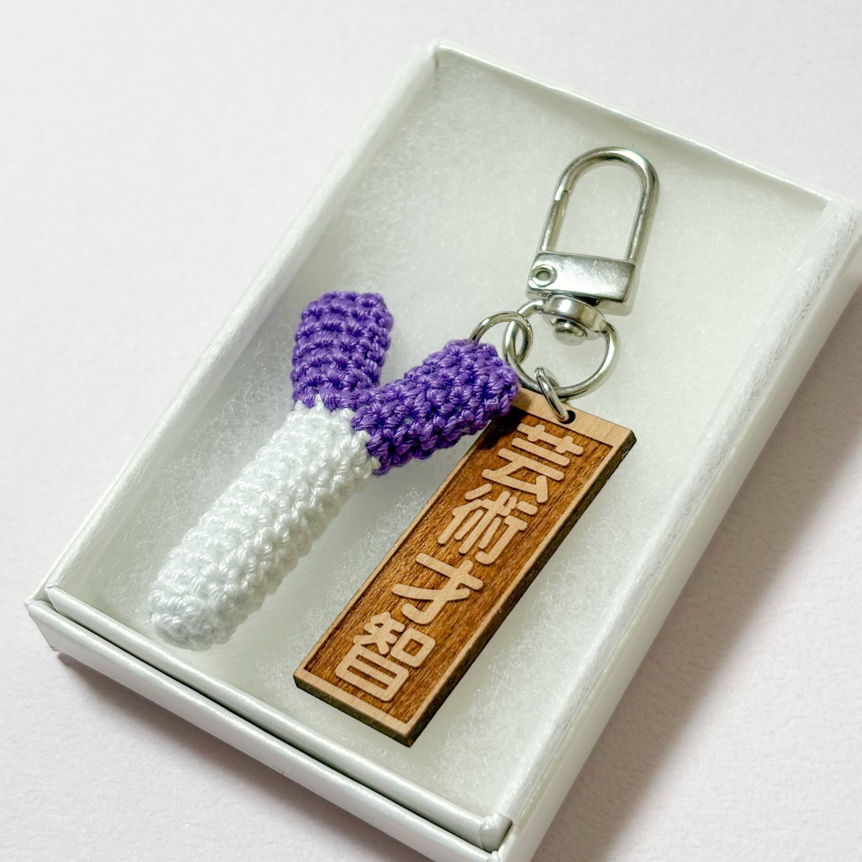 紫のネギのお守りキーホルダーです。