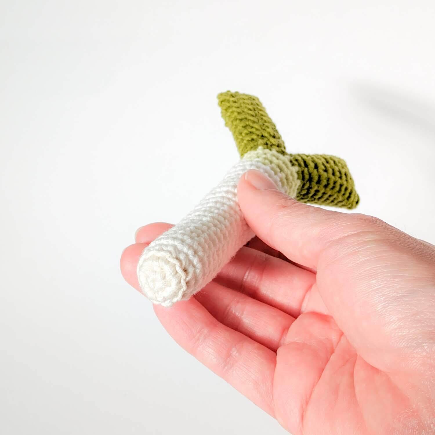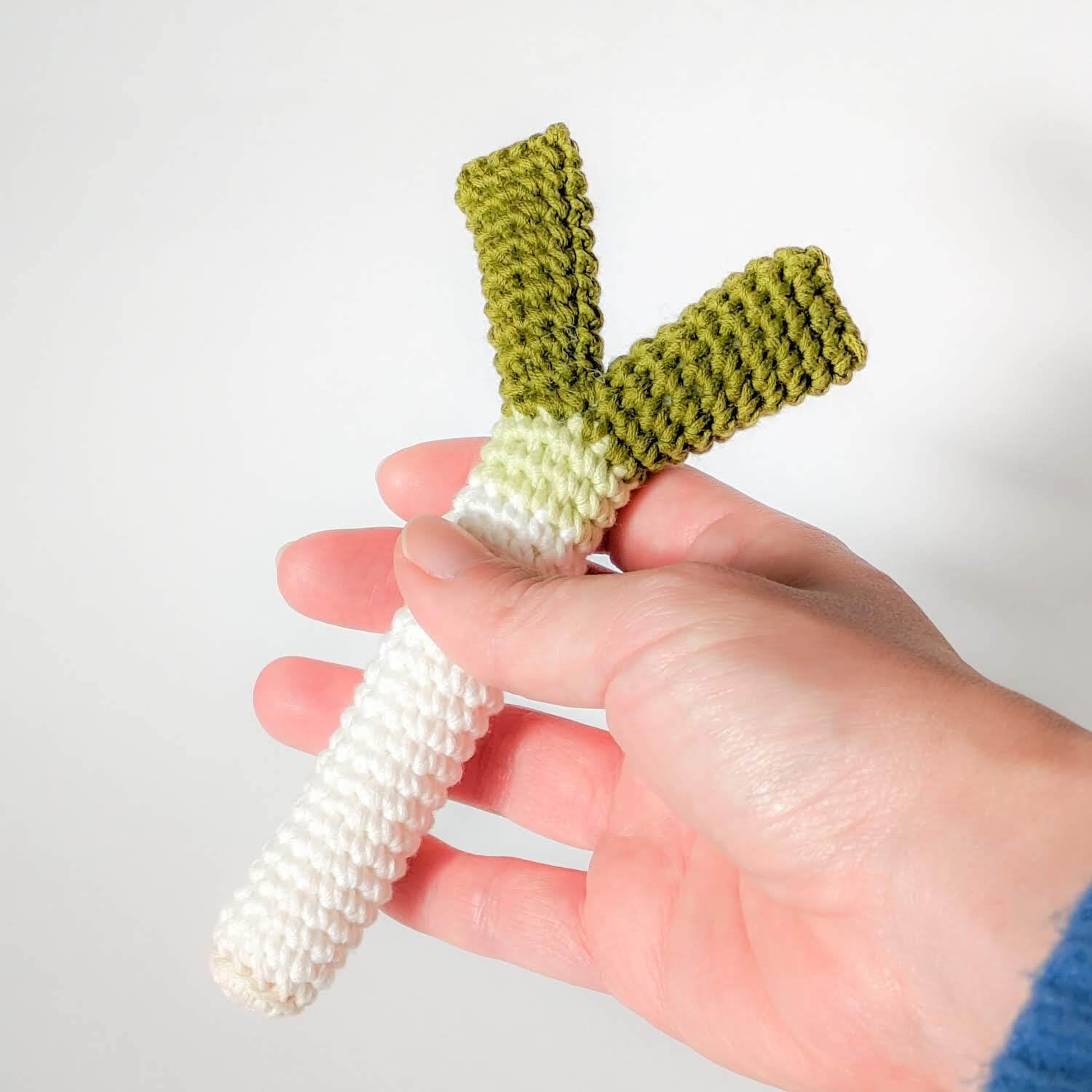 ちょっぴりシュールでおもしろ可愛いネギのあみぐるみ。