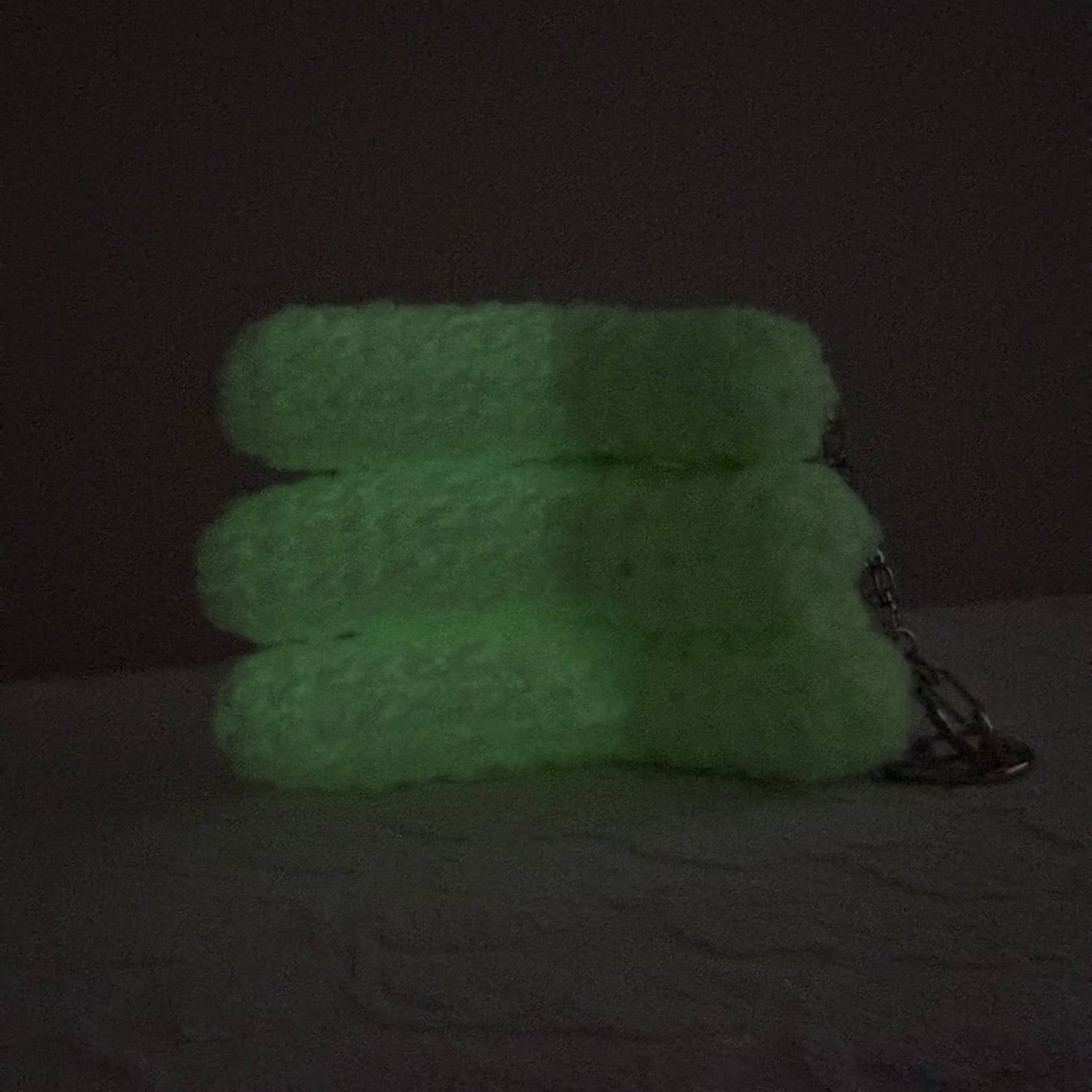 モコモコした蓄光毛糸で編んでいます。